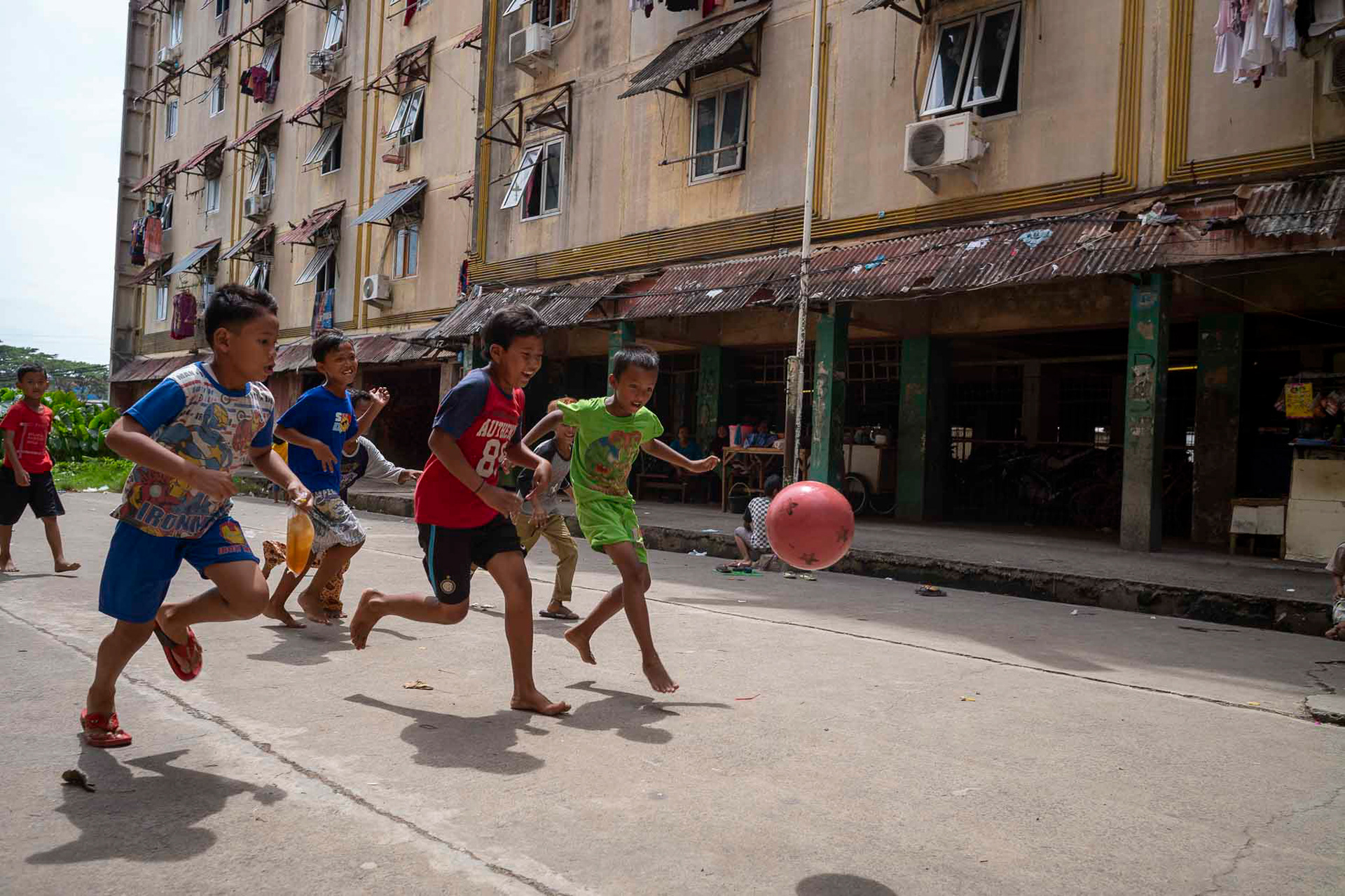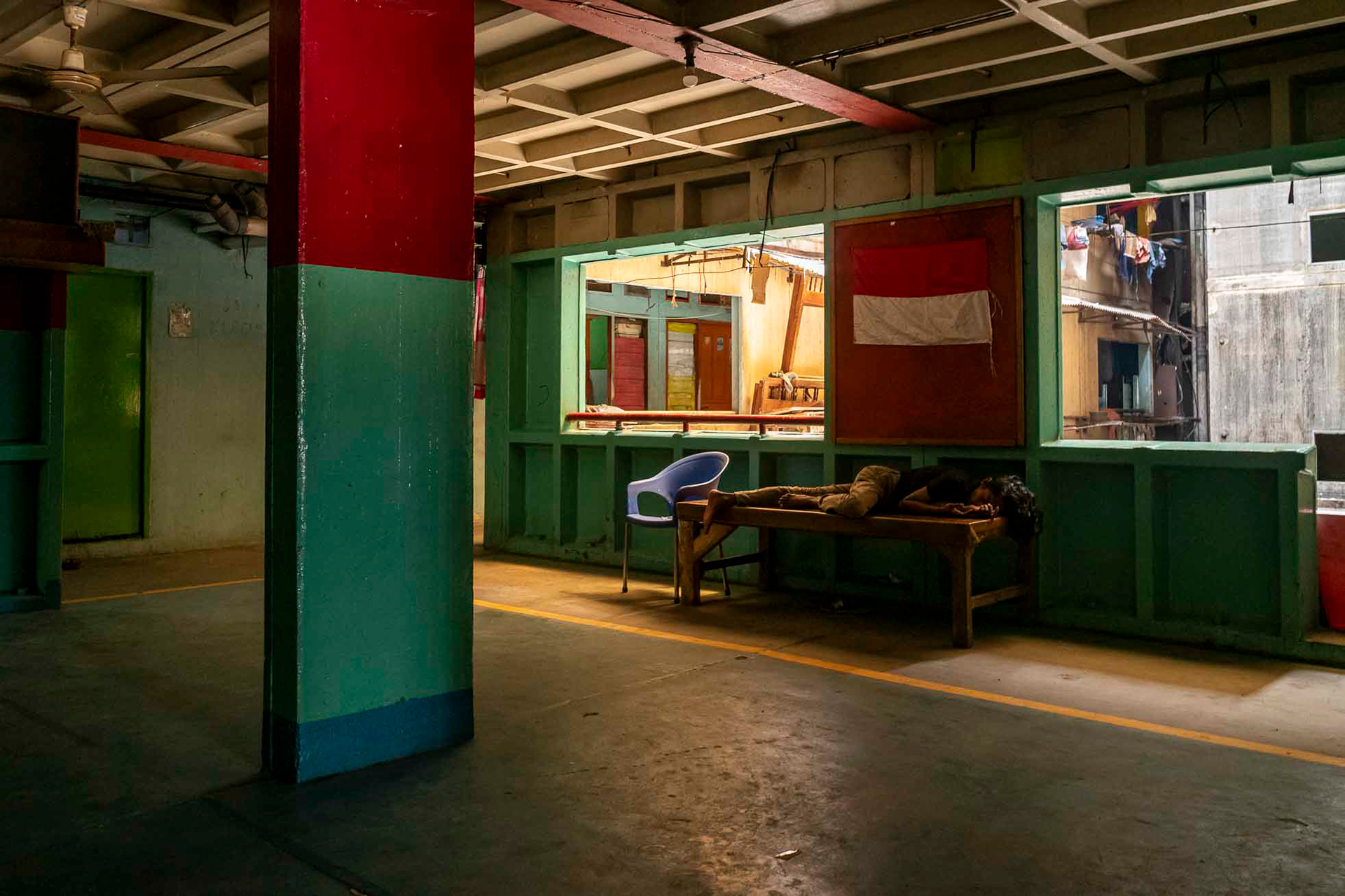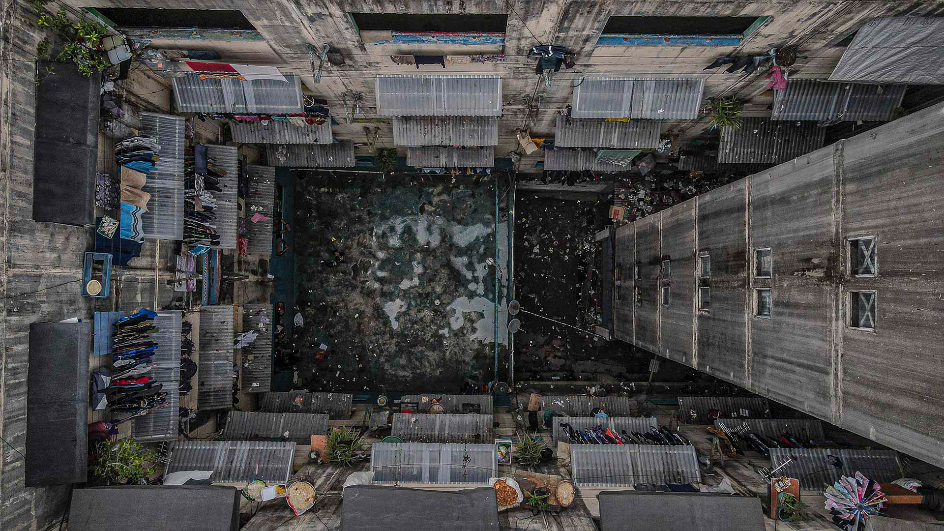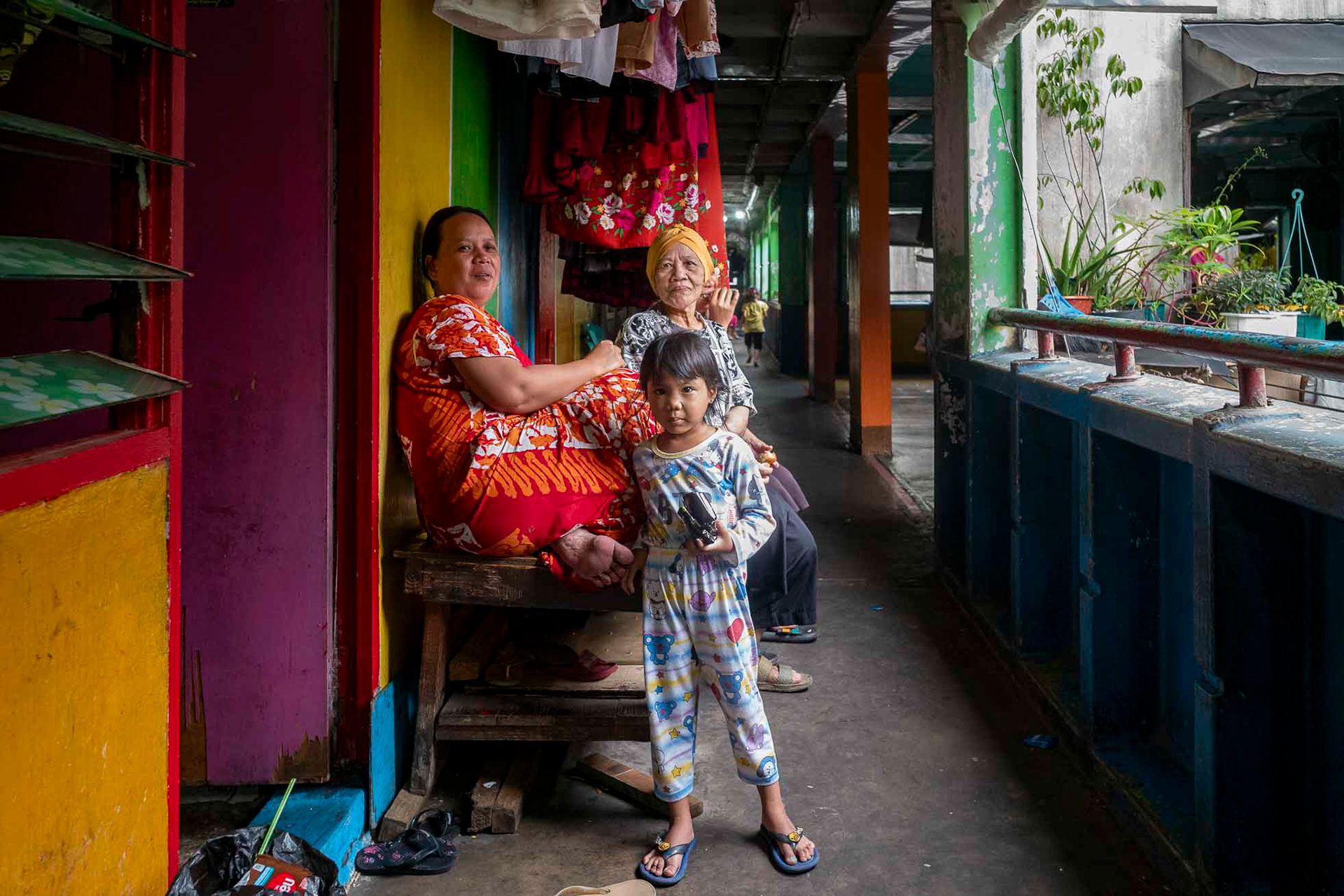 The flats in the Cilincing building were founded in 1996 by the Indonesian state-owned port company PT. Pelindo. Originally built to provide local housing for dockworkers, it soon became a relocation site for families from cleared slums. Only 25 years later, the flats have fallen into disrepair. According to the residents, the management never carried out any renovation work. Indeed, the condition of the roof of Block A seems anything but solid and water leaks from the perforated roof when it rains. Moreover, although many residents take care to keep their houses clean, there is a lot of rubbish lying around. In addition, the Cilincing Flats also have security problems, including motorbike theft.